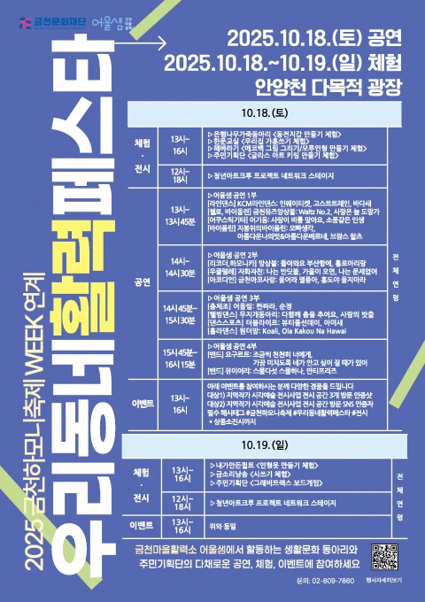 2025 금천하모니축제WEEK 연계행사 생활문화축제 <우리동네활력페스타> 안녕하세요. 금천마을활력소 어울샘을 중심으로 …